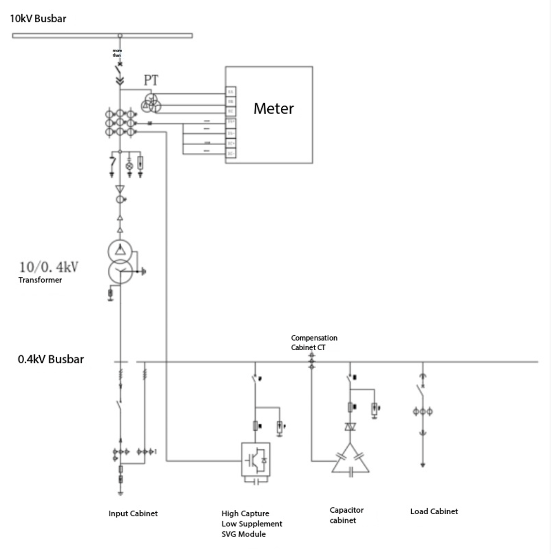 Therefore, we have developed a "high sampling, low compensation" product application solution. This involves sampling at the high-voltage inlet. It then compensates at the low-voltage side. This achieves reactive power compensation on both the high- and low-voltage sides.