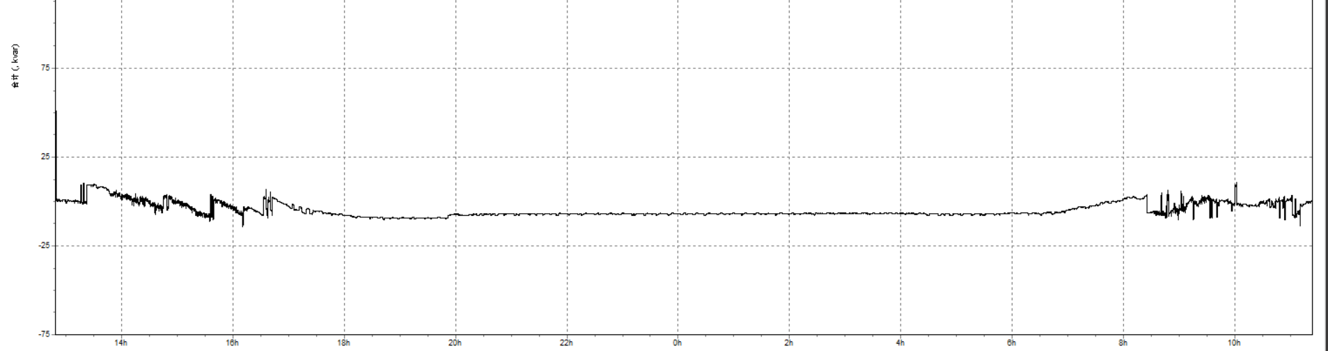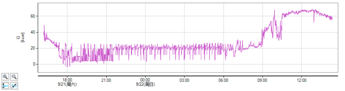 High-voltage measurement data shows that reactive power stayed near 20kvar at night before treatment. It rose above 60kvar during the day on the site’s high-voltage systems.