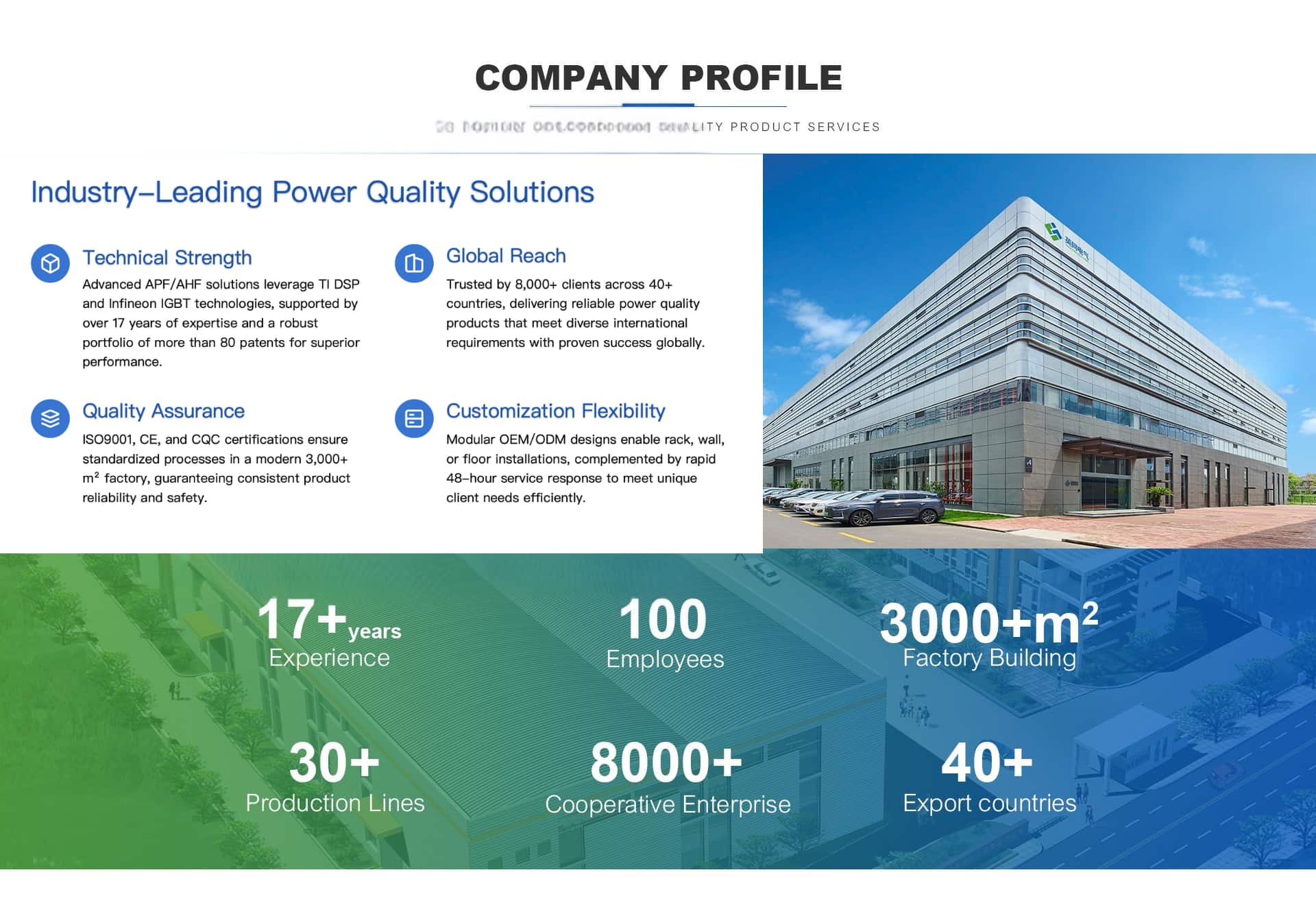 À propos de Shanghai Yingtong (YT) Electric Shanghai Yingtong (YT) Electric Co., Ltd est une entreprise pionnière dans le domaine des solutions de qualité de l'énergie, spécialisée dans la R&D et la fabrication de Filtres de puissance actifs , Générateurs statiques de puissance réactive , et Systèmes de stockage d'énergie Forte de plus de 15 ans d'expérience, YT Electric fournit des solutions énergétiques intelligentes, efficaces et propres aux industries du monde entier, notamment aux centres de données, aux hôpitaux et aux usines de fabrication.